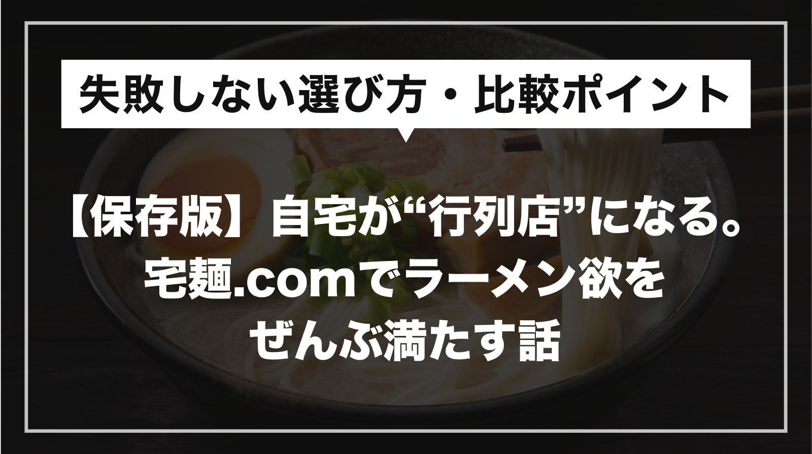 最後まで読めば、「次の週末、どのラーメンをポチるか」が自然と決まっているはずです。